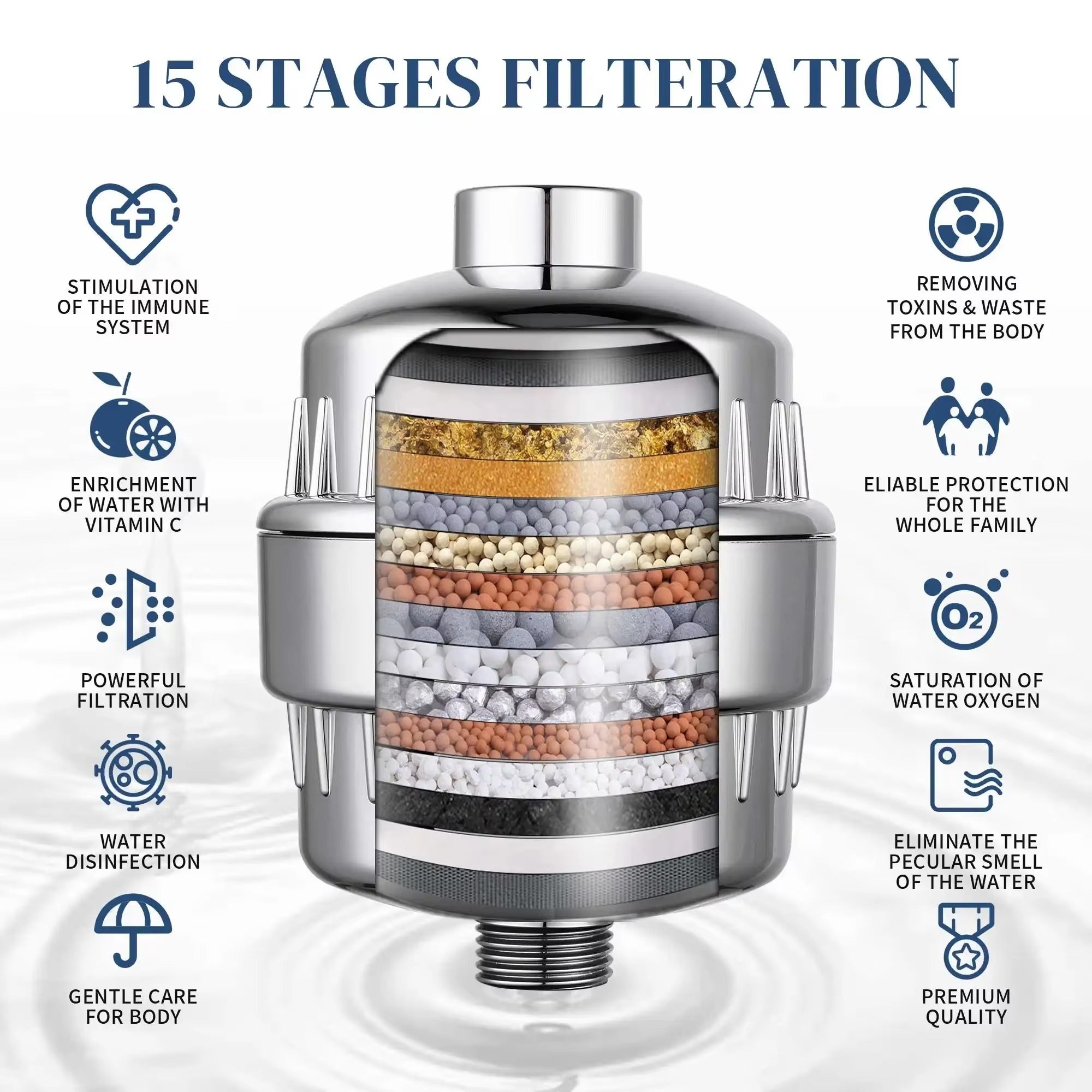 shower and tap filter for hard water with 15 stage | Water Softener for Bathroom | Hard Water Filter (Chrome, Pack of 1)