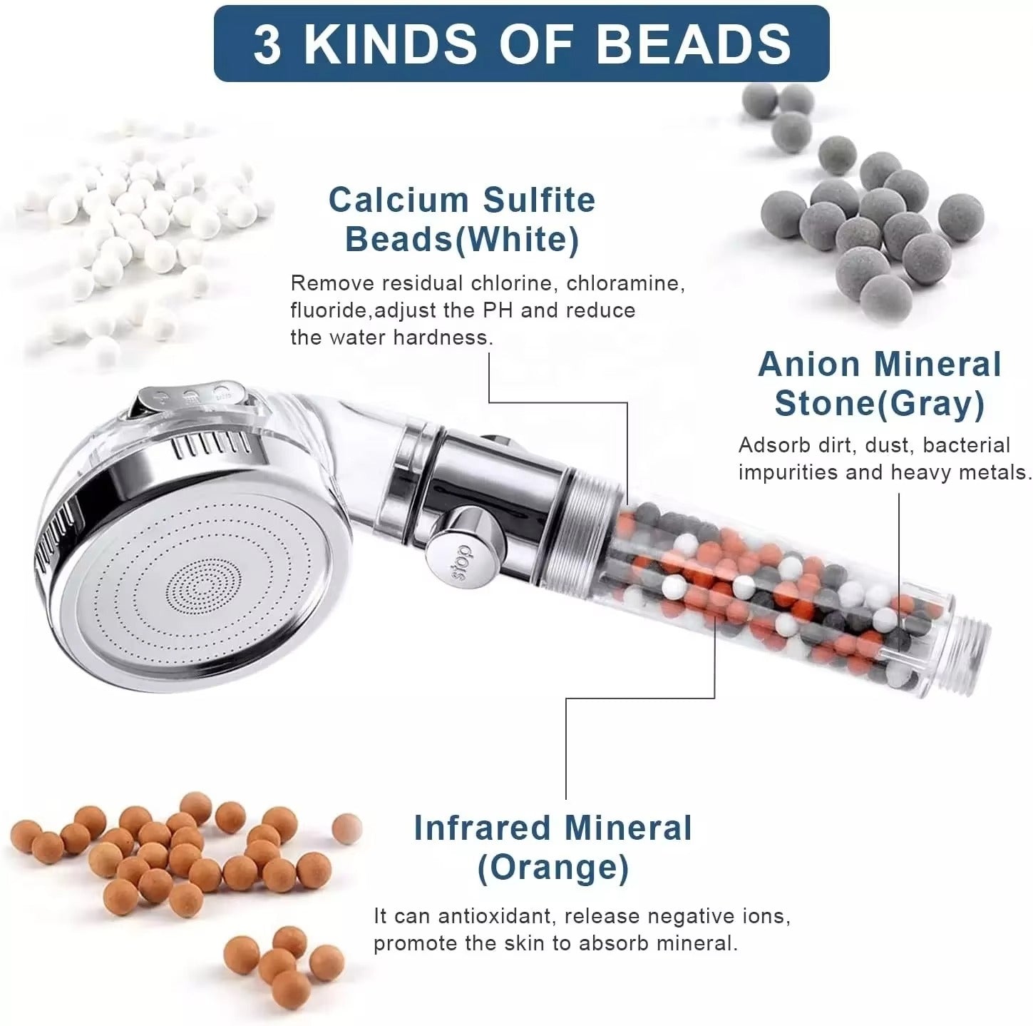 Iridescent 3-mode Portable Ionic Pure Shower Filter Head Ionic Mineral Stones Water-saving Rain Hand Held Shower Hand Spa
